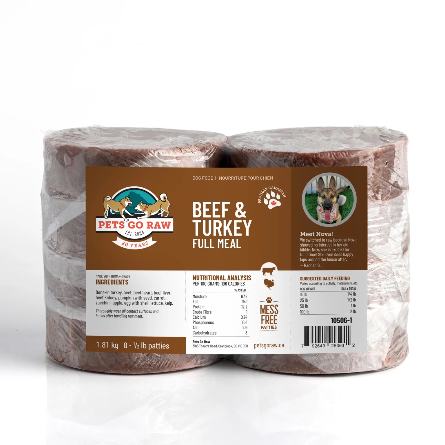Pets Go Raw Full Meals contain 75% meat and 25% vegetables and fruits. For complete, balanced nutrition we include organ meat, fresh whole egg with shell, and kelp.
