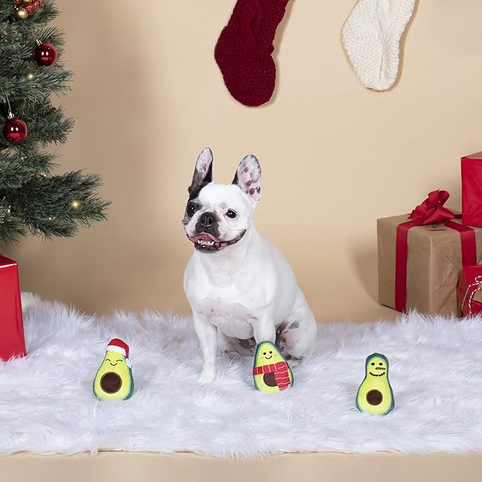 Get ready for some festive fun with the Fringe Studio Avo Merry Christmas! This adorable plush and squeaky dog toy set features holiday-themed avocados that are sure to make your pup's tail wag with joy. It's the perfect stocking stuffer or a delightful surprise to place under the tree!
