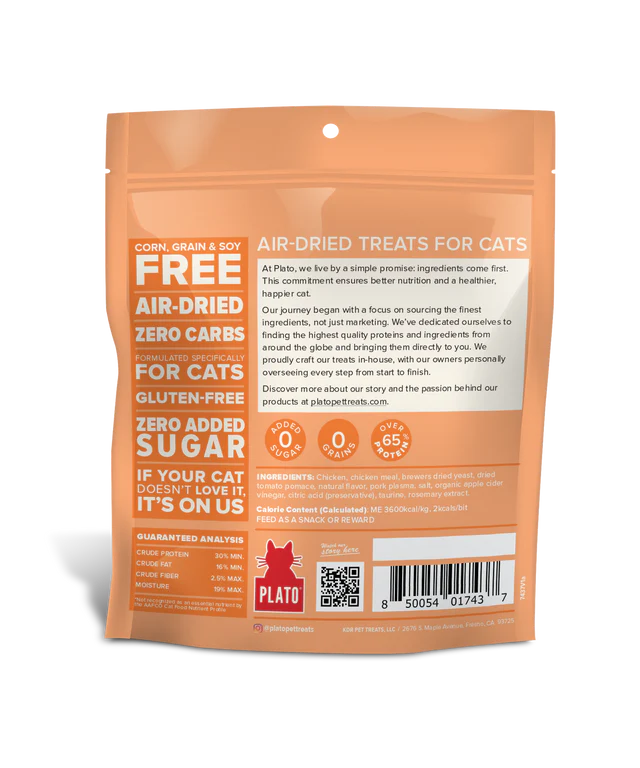 A pantry staple, air-dried cat treat morsels made of chicken will be a great addition to any cat parent's basket. Transform treat time into a healthy alternative to regular treating that cats are guaranteed to love.
