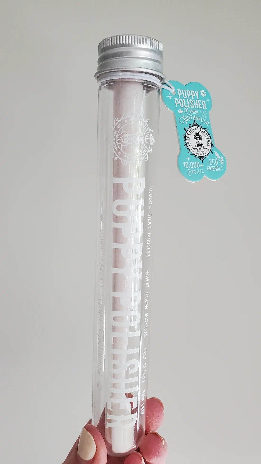 Care instructions: Wash your Puppy Polisher toothbrush after every use. Dry thoroughly. Pat dry if necessary. Ensure brush is fully dry before storing.