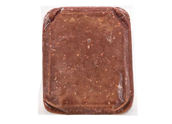 Keep product frozen until ready to use. Defrost package in a leak-proof container (reduces the risk of cross contamination!) and leave in the refrigerator for 24 hours, or until soft through. We recommend serving in a stainless steel bowl as it is easier to clean, and does not have surface pores that may collect bacteria. Partially eaten food should be put back into the refrigerator after 20 minutes. Wash hands, utensils and all contact surfaces with soap and hot water.