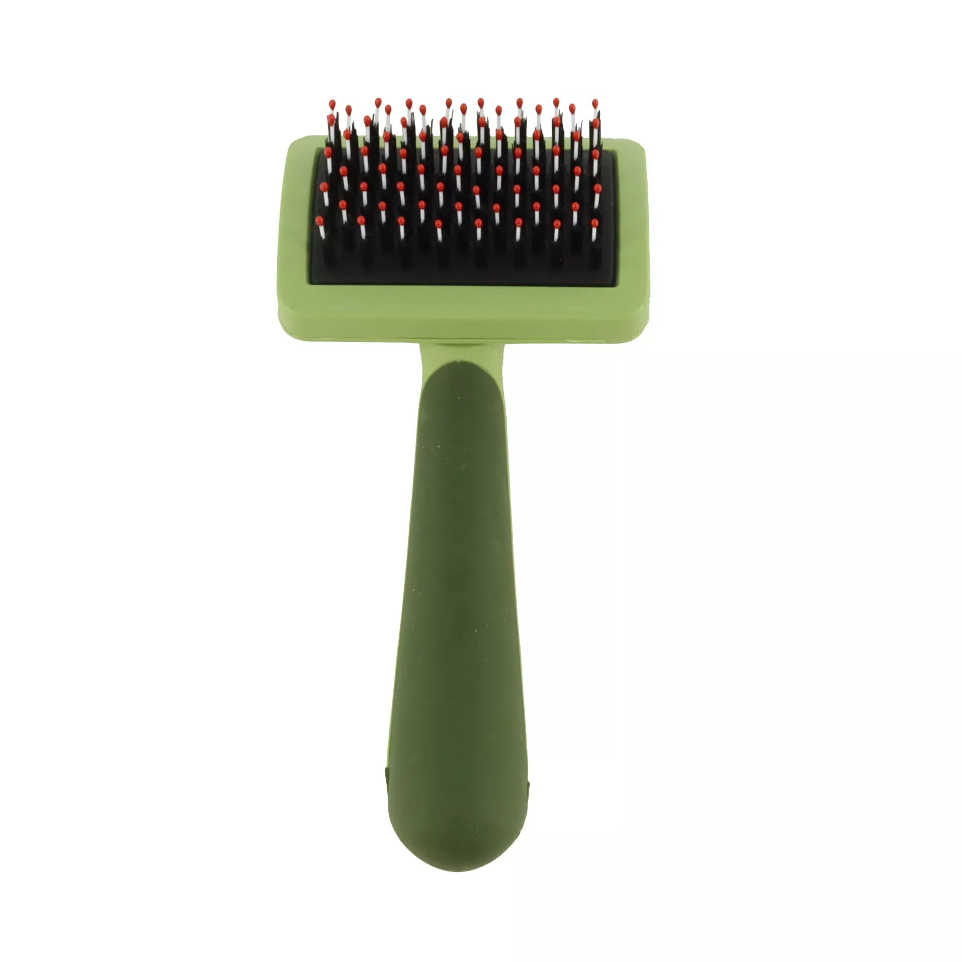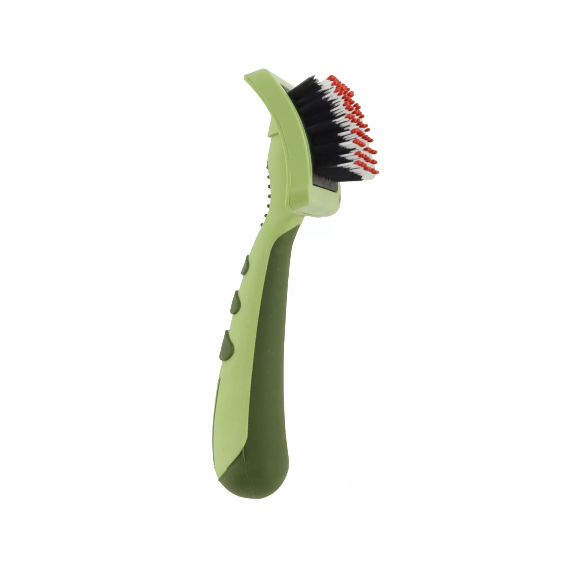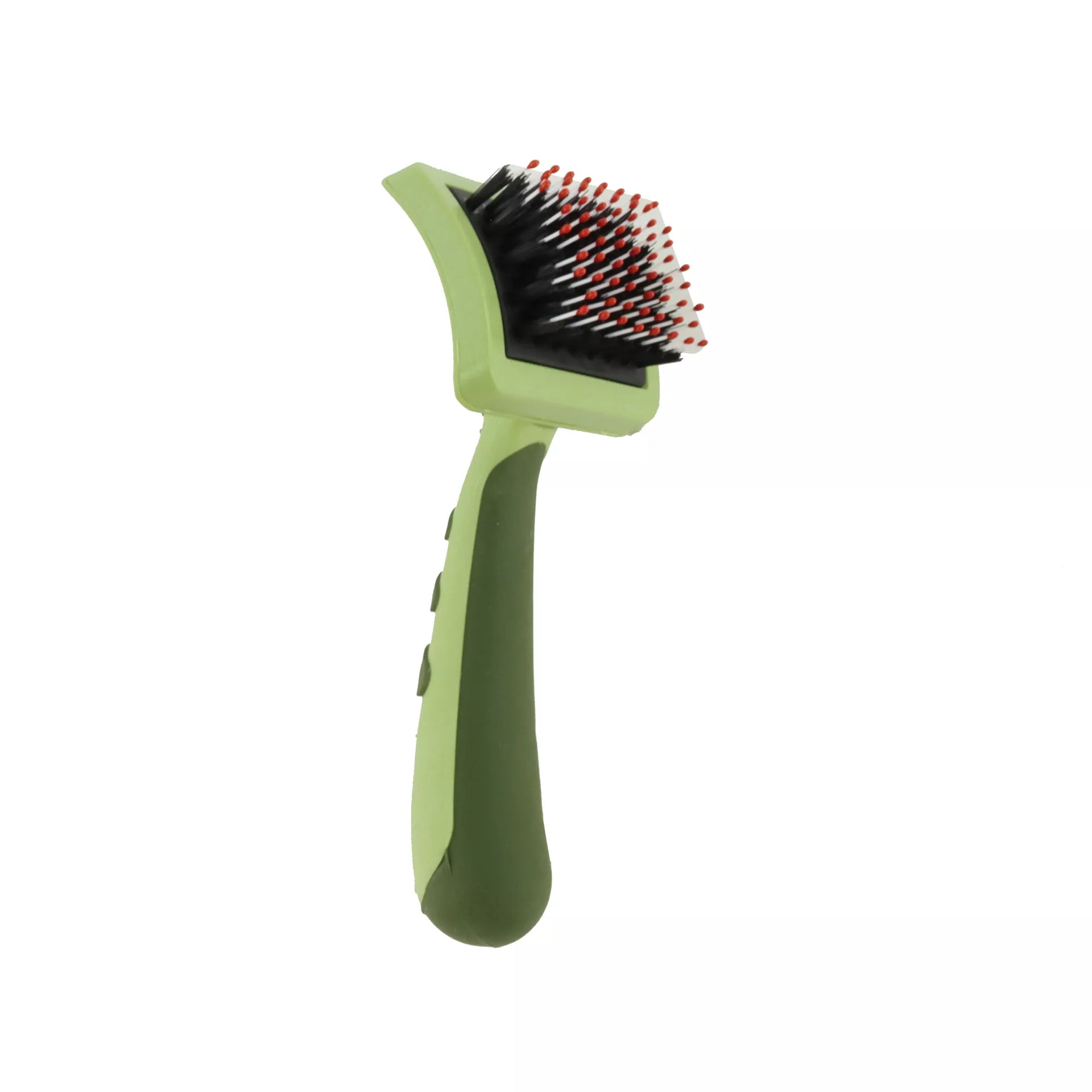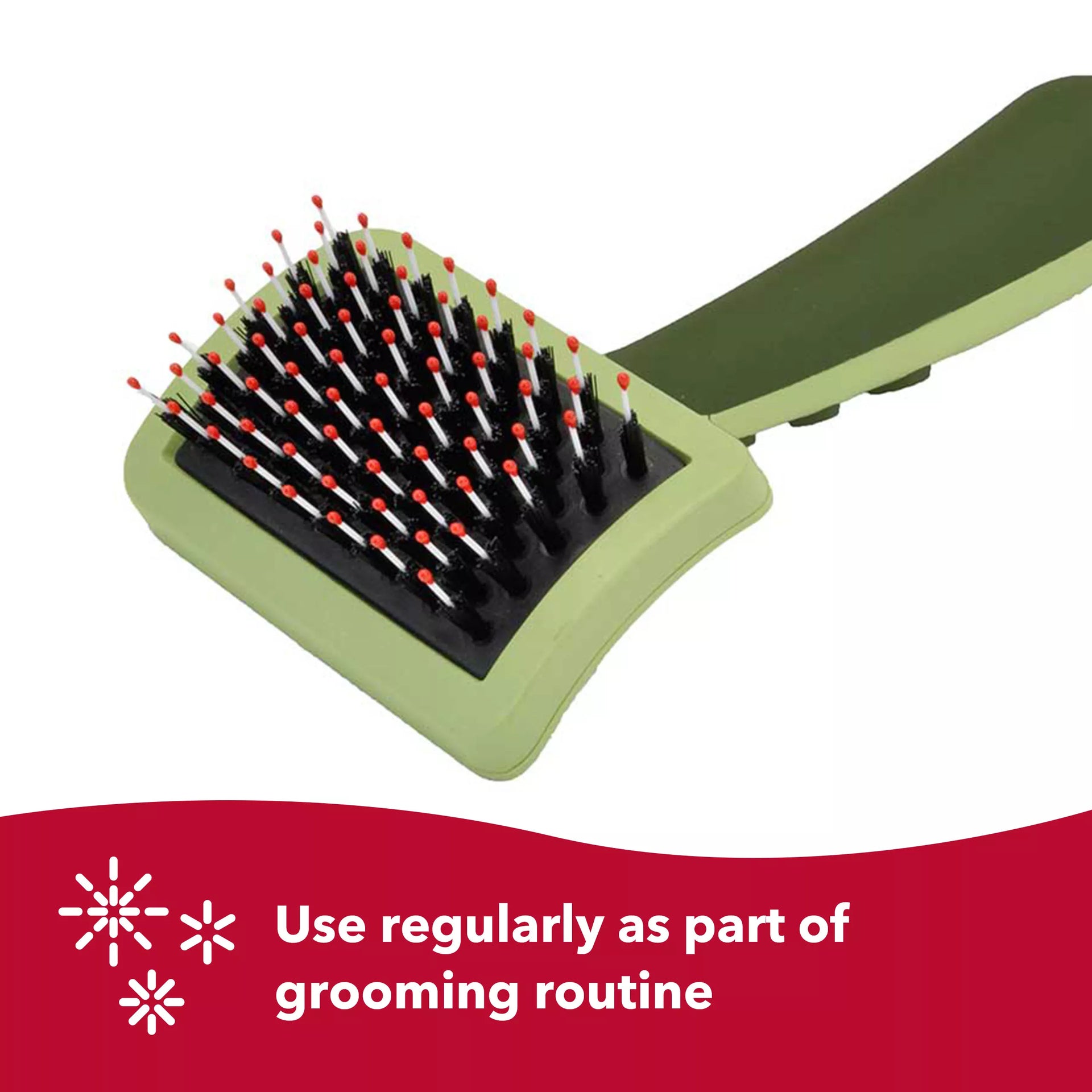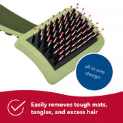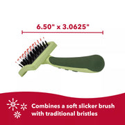 - All-in-one design combines a soft slicker brush with traditional bristles for complete grooming.