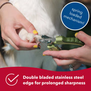 - Double-bladed cutter with a tension spring that helps ensure a swift clean cut. This makes nail trimming less like a chore and is great for left or right hand use.