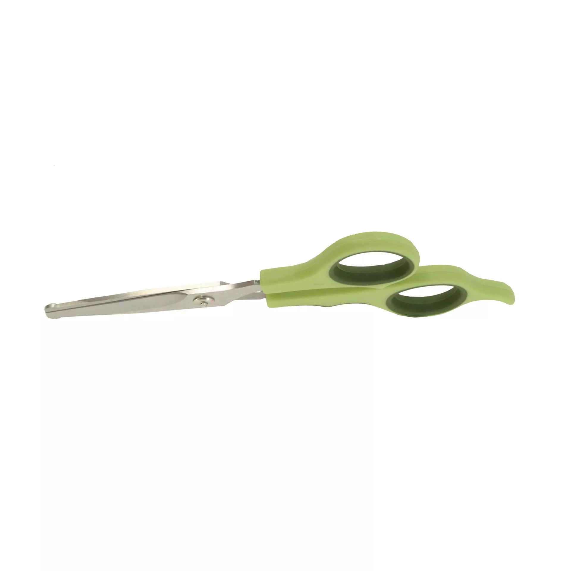 - Pre-sharpened stainless-steel scissors ensure a smooth and even trim, right out of the package.