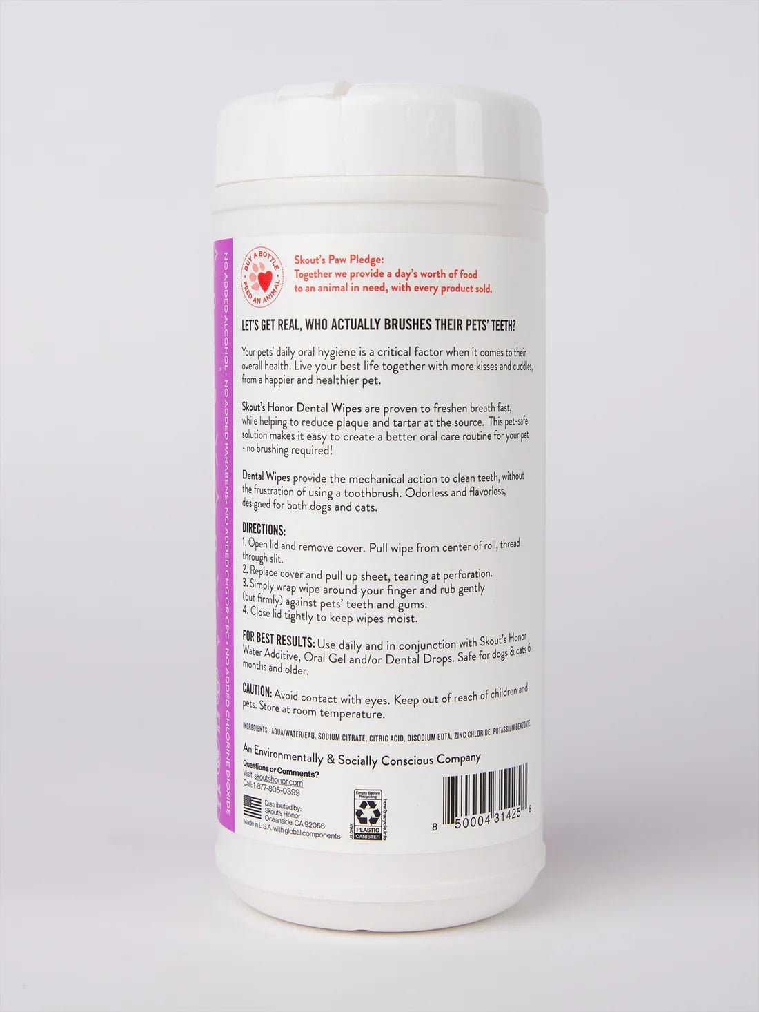 This pet-safe solution makes it easy to create a better oral care routine for your pet - no brushing required! Dental Wipes provide the mechanical action to clean teeth, without the frustration of using a toothbrush. Odorless and flavorless, designed for both dogs and cats.