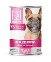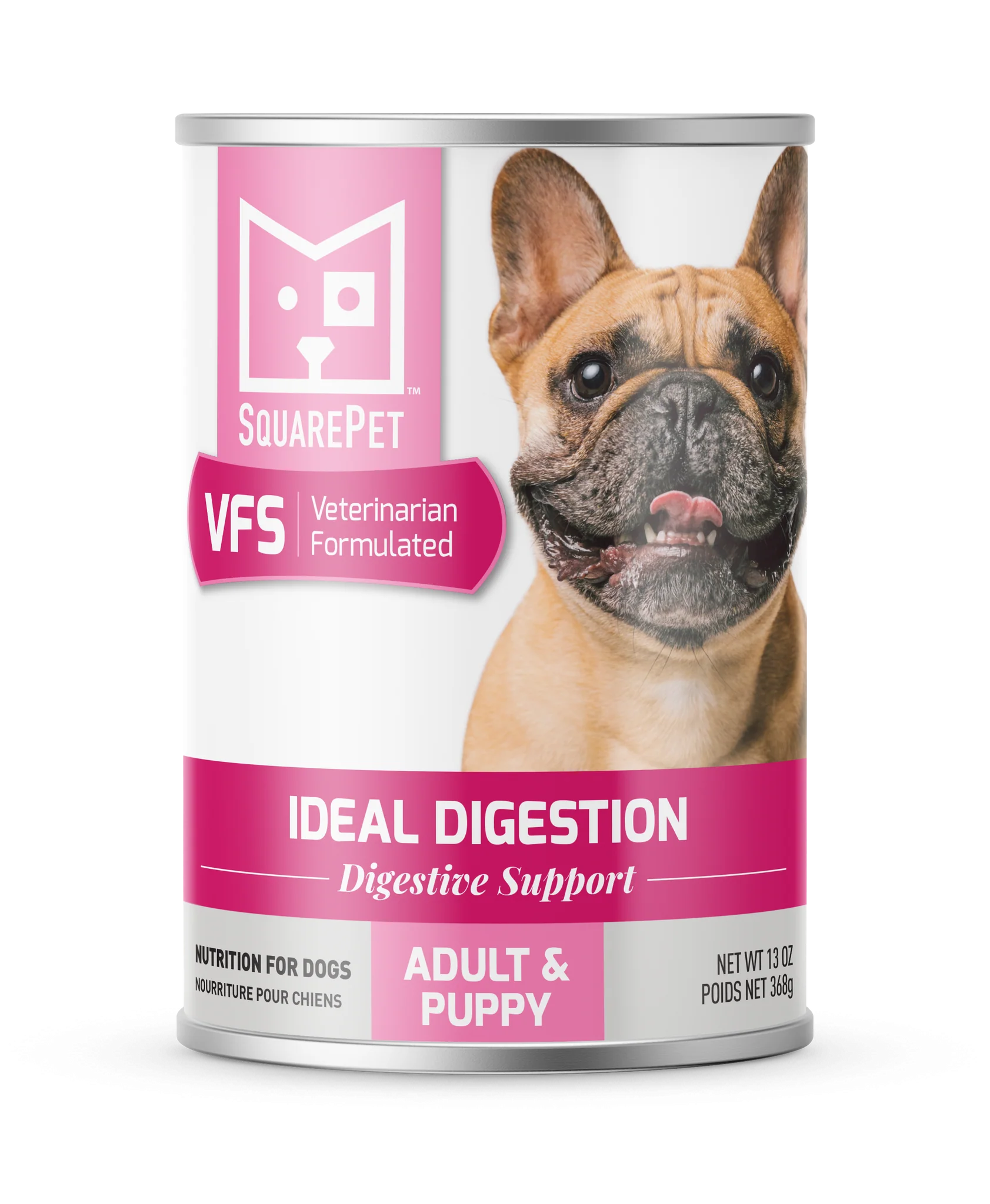SquarePet® VFS® Ideal Digestion canned diet has been designed by SquarePet’s team of veterinary professionals to support digestive health. VFS® Ideal Digestion is made with cage free turkey, pork liver and mackerel to create a highly palatable and easily digestible diet perfect for sensitive stomachs.
