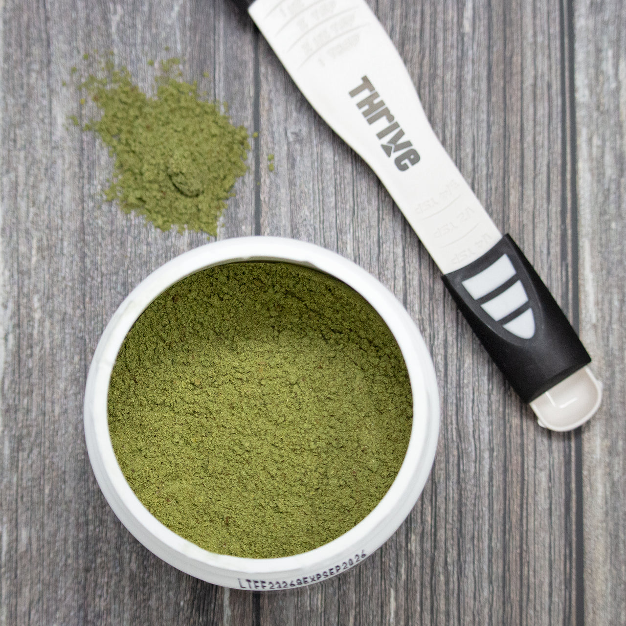Kelp, Spinach, Alfalfa Powder, Wheat Grass, Barley Grass, Flax Seed Meal, Spirulina, Vitamin C, Zinc Citrate, Manganese Sulphate, Vitamin D3, Vitamin E, Protease, Lipase, Amylase, Cellulase ---Inactive Ingredients: Alfalfa Powder, Apple Pectin