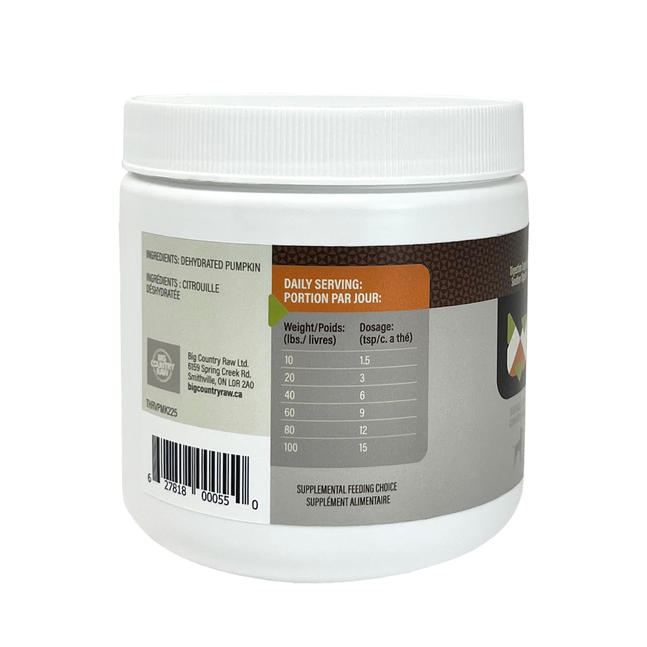 Add Pumpkin Powder to raw or moist meals, simply scoop, stir and serve. Can be rehydrated: 1 part water to 1 part dry powder.