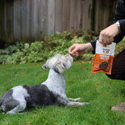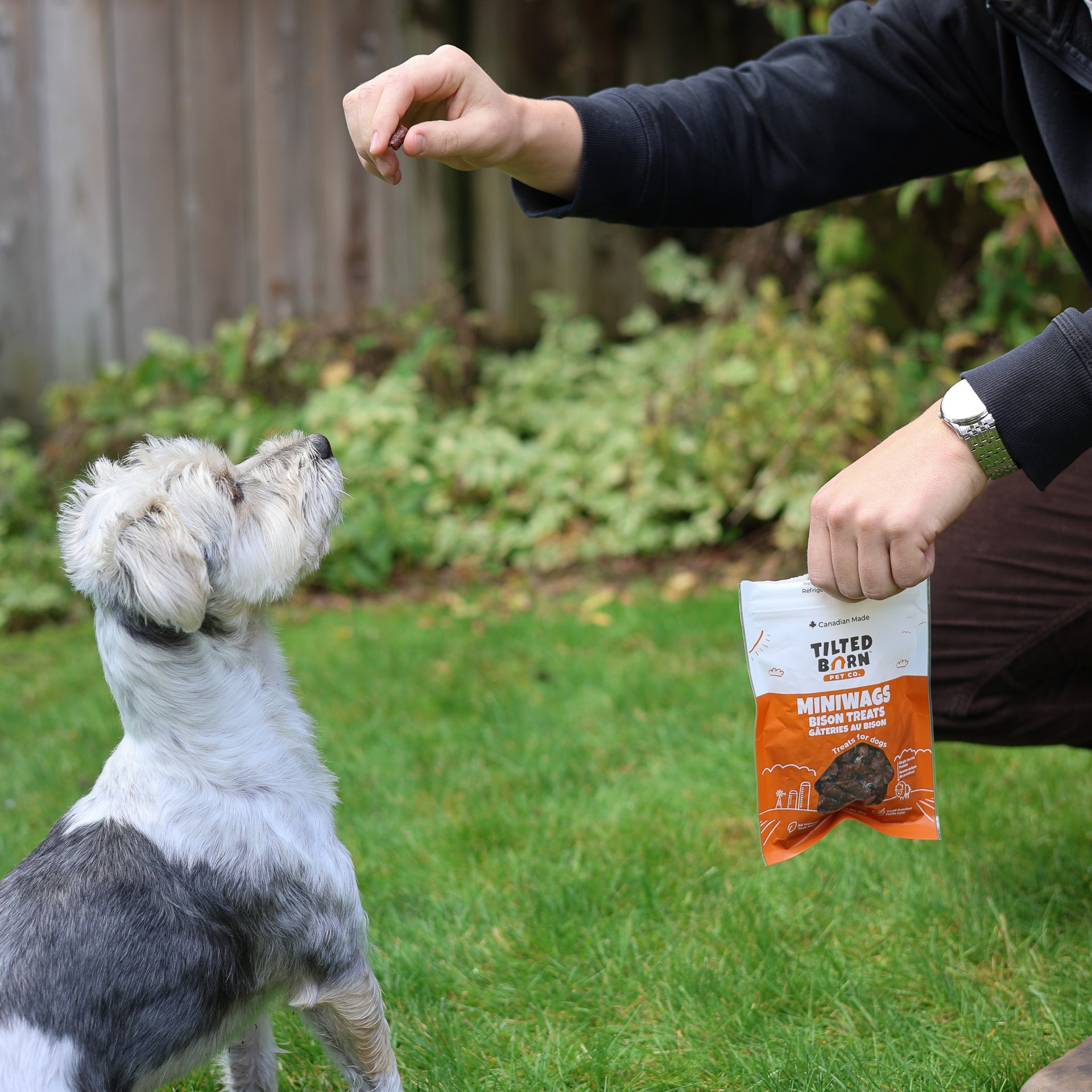 Our Canadian Bison Treats are healthy, soft meaty treats for dogs and cats of all ages and sizes. Our treats are preservative-free and contain no fillers or by-products. Our single-source protein treats are made with all-natural, high-quality, whole ingredients from the human food market sourced from across the Canadian Prairies, and are 100% Canadian-made. Our treats are available in 100g resealable packages.