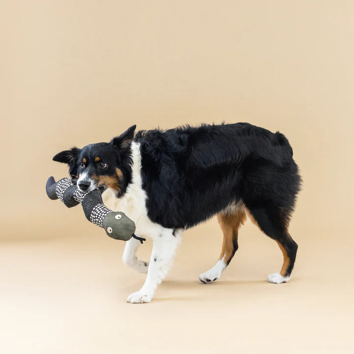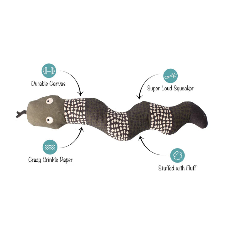 Our “Ssssssup” dog toy is the perfect playdate for your pup. Featuring durable cotton canvas, a super loud squeaker, crazy crinkle paper, and printed with water based and non-toxic ink, this toy was designed with interactive play in mind and a look that complements modern home décor. Whether you squeak, crinkle, or toss it, it'll be ssssssoo much fun for your pup.