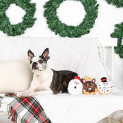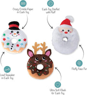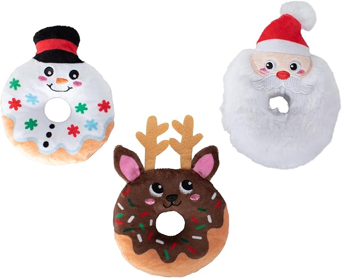 Do-nut forget the toys! PetShop by Fringe Studio's “A Hole Lot of Holiday Fun” 3 piece mini plush toy set is perfect for the pup that likes to play all day. Made with a loud squeaker and crazy crinkle paper in each toy, this trio is the perfect way to sprinkle your pup with some sweet fun. Great for small dogs and not intended for aggressive chewers.