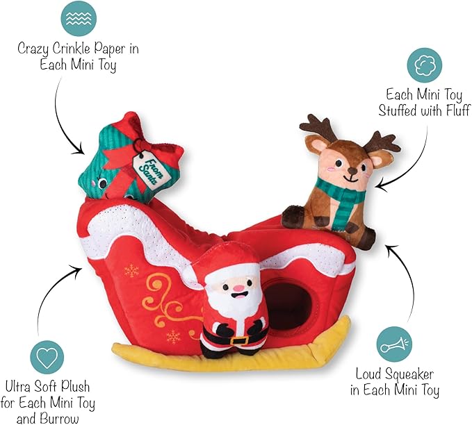 - 3 mini toys, each with a loud squeaker and crazy crinkle paper details