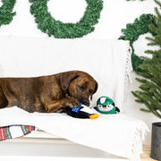 Playin' in a winter wonderland! Our “Winter Waddle Land” 2 piece plush toy set is perfect for playtime, anytime. Made with a super loud squeaker and crazy crinkle paper in each toy, this set was designed with interactive play in mind. Whether you squeak, crinkle, or toss them, your pup can enjoy the magic of the season. Great for all dog sizes and not intended for aggressive chewers.