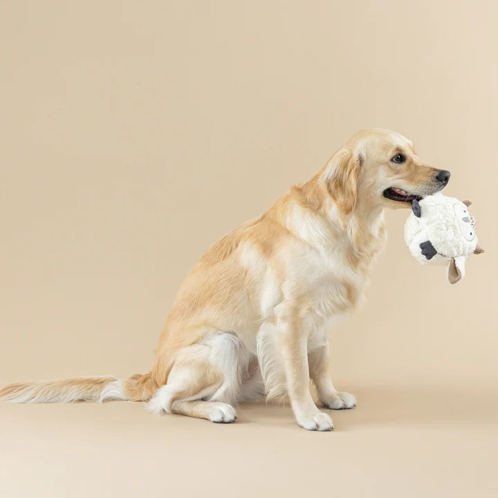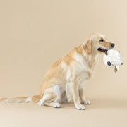Our "Whoooooo's There?” earth friendly dog toy is the perfect playdate for your pup. This toy was designed with interactive play in mind and a look that complements modern home décor (and the planet!) using non-toxic canvas, organic cotton faux fur, biodegradable hemp, spun-recycled water bottle filling, a TPR spikey squeaker ball, and crazy crinkle paper. Whether you squeak, crinkle, roll, or bounce it, this eco-friendly toy is a hoot to play with.