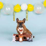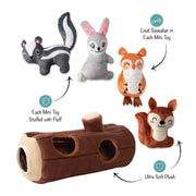 Tree-mendous fun! Our “Branch Out” burrow plush toy set is perfect for high-energy pups that enjoy interactive puzzle toys. This burrow toy set includes 4 mini toys, each stuffed with fluff and a loud squeaker. Keep your dog entertained and occupied with hide-and-seek fun: simply hide the mini toys inside the burrow toy, squeak a mini toy, and watch your dog try to figure out how to pull them out. They’ll really woof you for this brain teaser!