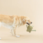 Our “I Jump Around” earth friendly dog toy is the perfect playdate for your pup. This toy was designed with interactive play in mind and a look that complements modern home décor (and the planet!) using non-toxic cotton canvas, soy faux fur, spun-recycled water bottle filling, a super loud squeaker, and crazy crinkle paper. Whether you squeak, crinkle, or toss it, this eco-friendly toy is ready to hop into play mode with your pup.