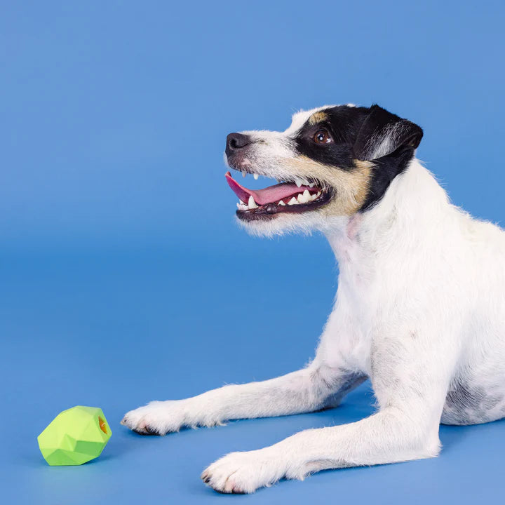 Ready to join the Dura Club? Our "You're Adora-Ball" rubber dog toy is for pups that love to work for their treats, chew, and play lots of fetch. Made with natural rubber, a treat dispenser, and an erratic bounce, this toy was created for long-lasting interactive play. Simply fill it with treats and toss it for some fetchin' fun to keep your pup busy trying to get them out!