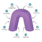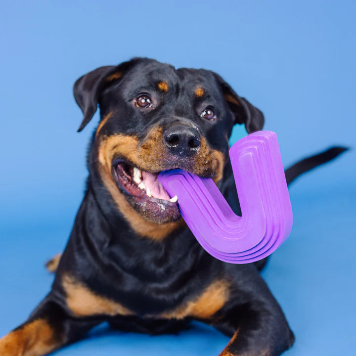 Ready to join the Dura Club? Our "Color Me Happy" rubber dog toy is for pups that love to chew, tug, and play lots of fetch. Made with natural extreme-chew rubber, an erratic bounce, and a crinkle sound, this toy was created for long-lasting interactive play. Simply toss it for some fetchin' fun or hold on tight to one end while your pup tugs the other end!