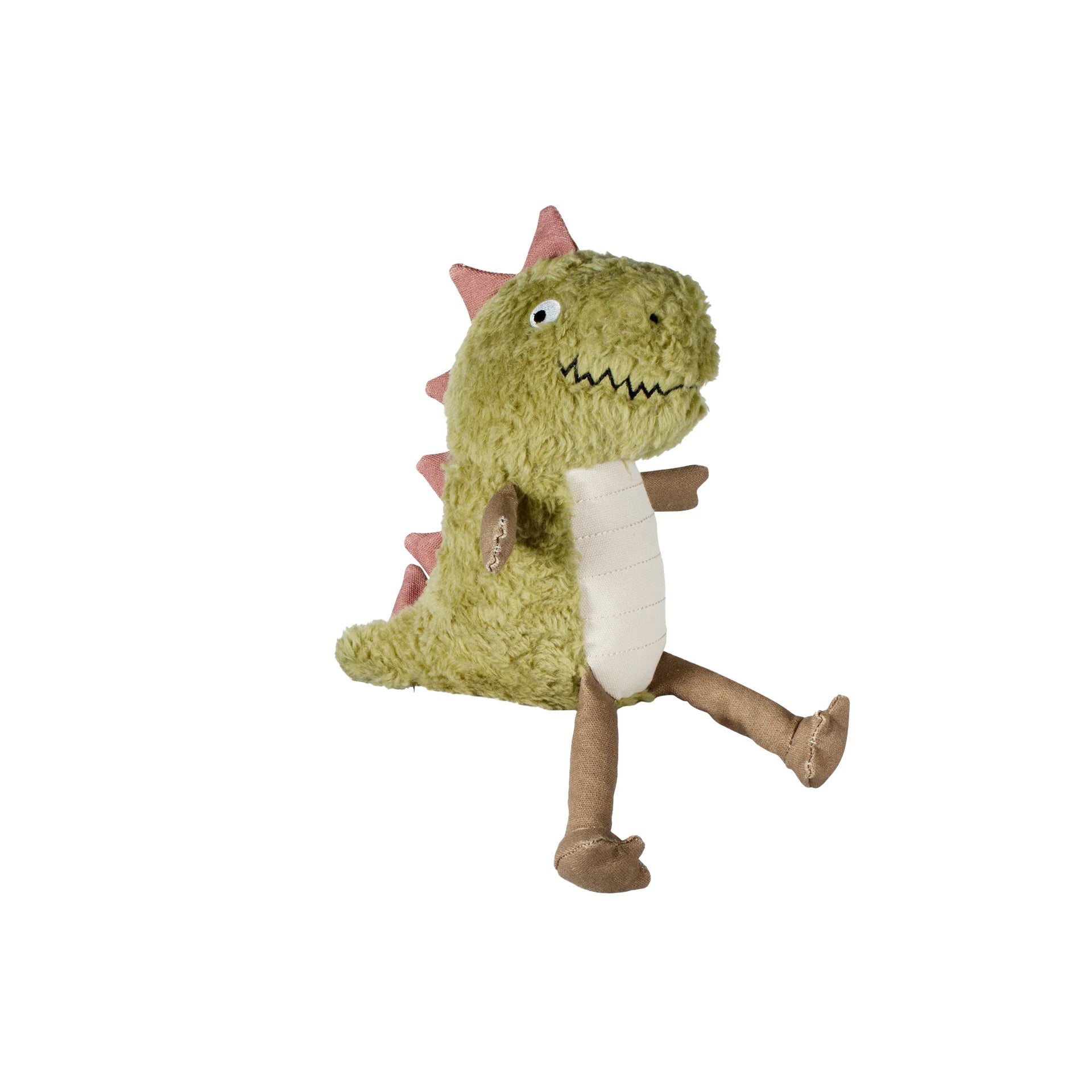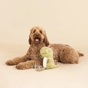 Our “Small Arms, Big Heart” earth friendly dog toy is the perfect playdate for your pup. This toy was designed with interactive play in mind and a look that complements modern home décor (and the planet!) using non-toxic cotton canvas, soy faux fur, spun-recycled water bottle filling, a super loud squeaker, and crazy crinkle paper. Whether you squeak, crinkle, or toss it, this eco-friendly toy is rawr-some to play with.