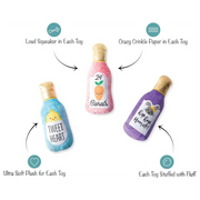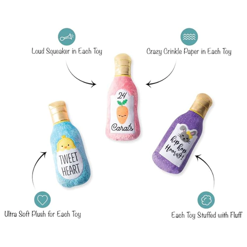Get your pup's paw on Fringe Studio's "Somebunny Needs Wine" toy set - with a loud squeaker and crazy crinkle paper in each toy, it's perfect for playtime and giving you a chance to wine down.