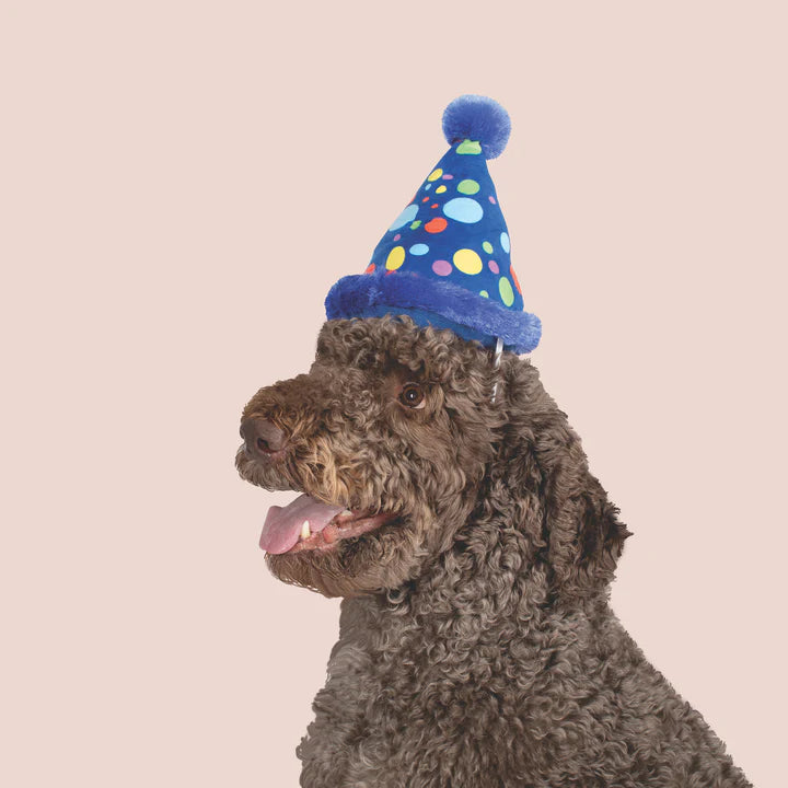 Raise the woof! Our "Pawty for One" birthday plush hat is perfect for playtime and pawty time. Made with an elastic band and super loud squeaker, your pup can wear then play with this fun barkday hat.