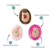 - Features 3 adorable hedgehogs covered in faux fur for added texture for your dog to enjoy