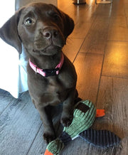 With all Tall Tails dog toys we encourage pet parents to Baby Your PetTM and to supervise during playtime. Please remove any toy, Tall Tails or non-Tall Tails, when you notice sizable pieces breaking off to avoid any choking or blockage hazards. Pets are our babies, treat them like so.