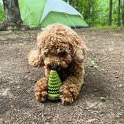 The Natural Rubber Evergreen Tree Reward Dog Toy is crafted from durable and flexible natural rubber, providing a stimulating mental and physical playtime for your furry friend. Your pup can lick and nudge the toy to their heart's content while being rewarded with treats that shake out as they play. The outer grooves of the toy can hold their favorite spreadable, while the top treat port is perfect for their favorite stick treats. This toy is perfect for dogs who enjoy a fun challenge and can easily be cleaned in the dishwasher's top rack after use.