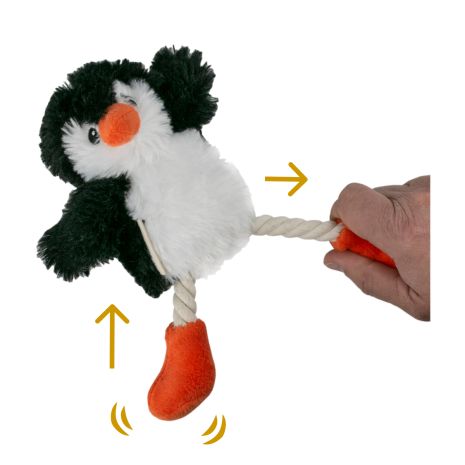 Keep your pup engaged through the holidays and beyond with Tall Tails' Penguin Pull-Through Rope Tug Dog Toy! Ideal for dogs who love to tug and squeak, this rope dog toy features legs that can be pulled back and fourth for thrilling tug play. Our stuffing is made from 100% recycled plastic bottles while our squeakers are sewn into a separate pouch and stitched into the seam for extra protection. Crinkle features in arms for more discoverable fun, our Penguin Pull-Through Rope Tug Dog Toy makes the paw-fect gift for your pup this holiday season.