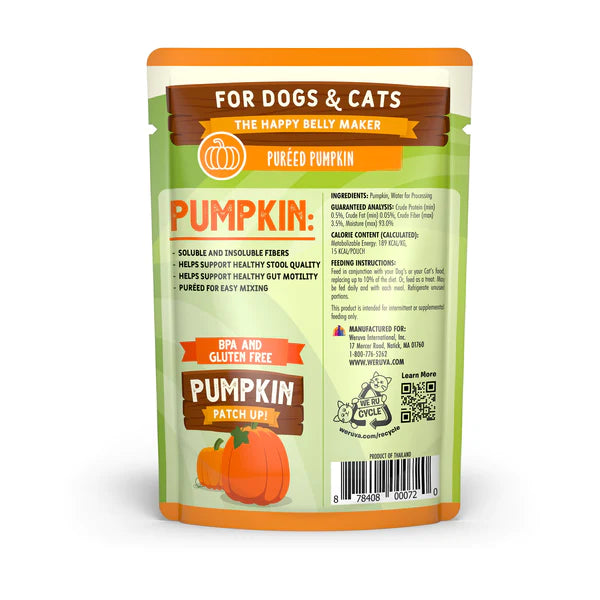 Weruva's pumpkin supplement is a great source of healthy fiber helping to support your cat's or dog's digestive system. We combine the healthy digestive benefits of pumpkin in an easy to serve pouch.