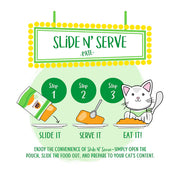 - Slide it, serve it, feed it with our Slide N' Serve pouches! It's that easy!