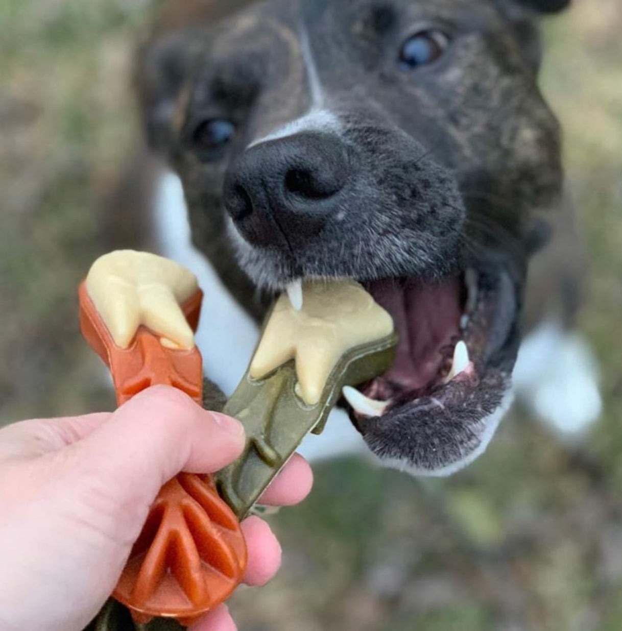 Introduce a new love of “brushing” with the WHIMZEES Dental Dog Treats. Totally edible and easily digestible, these vegetarian and all-natural treats help to freshen breath and reduce buildup on your dog’s teeth. They’re free of gluten so it’s a great solution for dogs with sensitivities, and they’re made with natural ingredients that have vitamins and antioxidants. Dental hygiene is as important for dogs as it is for humans, and Whimzees dog treats make it easy for dogs to clean their own teeth.