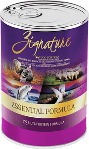 Zignature Canned Zssential Formula is made with the tastiest blend of red meat, poultry and fish to give your protein loving pup all the flavors they crave! This formula contains at least 78% moisture, is made with high-quality meats as the first ingredients, and features nutritious ingredients like peas and chickpeas to round out your furry friends well-balance and delicious diet.