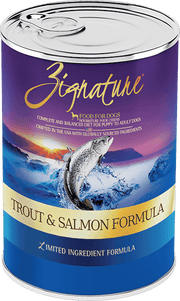 Zignature Canned Trout & Salmon Meal Formula is made with high-quality Trout and Salmon Meal to give your pup a true taste of the sea! This flavorful fish combination contains at least 78% moisture, is made with heart-healthy trout and salmon meal as the first ingredients, and features nutritious ingredients like peas and chickpeas to real in a well-balanced diet.