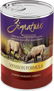 Zignature Canned Venison Formula is a unique and delectable formula that’s crafted with high-quality venison as the number one ingredient. It contains 78% moisture, is packed with protein, and features nutrient-dense ingredients like peas and chickpeas to round out a well-balanced and delicious diet.
