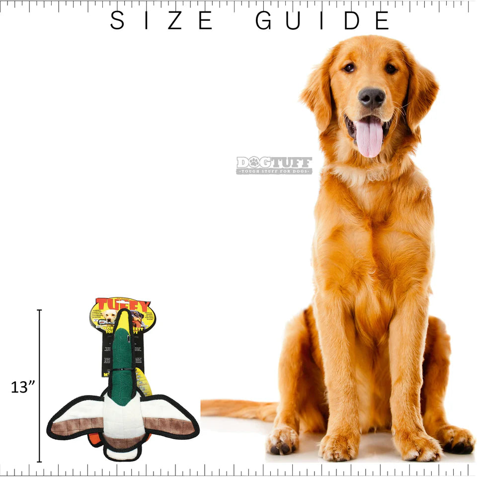 Tuffy Dog Toys Dudley the Duck JR - There is no time to dilly-dally with Dudley the Duck JR! Fly him through the air with a game of fetch, or pull him through the pool with a game of tug. This daring duck loves it all! Your Pooch will be pleased with this fun and adventurous toy! Features 2 Built-in Squeakers. Easy to toss and Great For Indoors! Washable! And Floats!! -- Soft edges won't hurt gums.