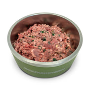 Beef, Beef heart, pork liver, beef bones, Zucchini, Beef kidney, spinach, Green bean, Cranberries, Calcium Phosphate, Calcium Carbonate, Vitamins and Minerals (<0,3%: salt, magnesium sulfate, kelp, iron glycinate, vitamin E, manganese glycinate, Zinc proteinate, potassium chloride, Manganese proteinate, potassium iodide, thiamine mononitrate, Copper proteinate).