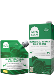 Superfood, super-soup or super delicious. Whatever you call it, Open Farm's new broth comes from ethically raised turkey. The bones are slowly simmered with functional ingredients like locally sourced non-GMO pumpkins and carrots, and superfoods like turmeric. And it’s made specifically for pets – free of antibiotics, growth hormones, salt, garlic, and onion. Serve as topper for dry food or to rehydrate their Freeze Dried Raw recipes.