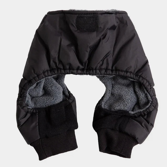 Simply lay the coat on your dog's back and attach the hook and loop fastener around the neck and chest. Quick and easy, with no more leg lifting! Pants can be added & removed from the jacket using the inside Velcro panels.