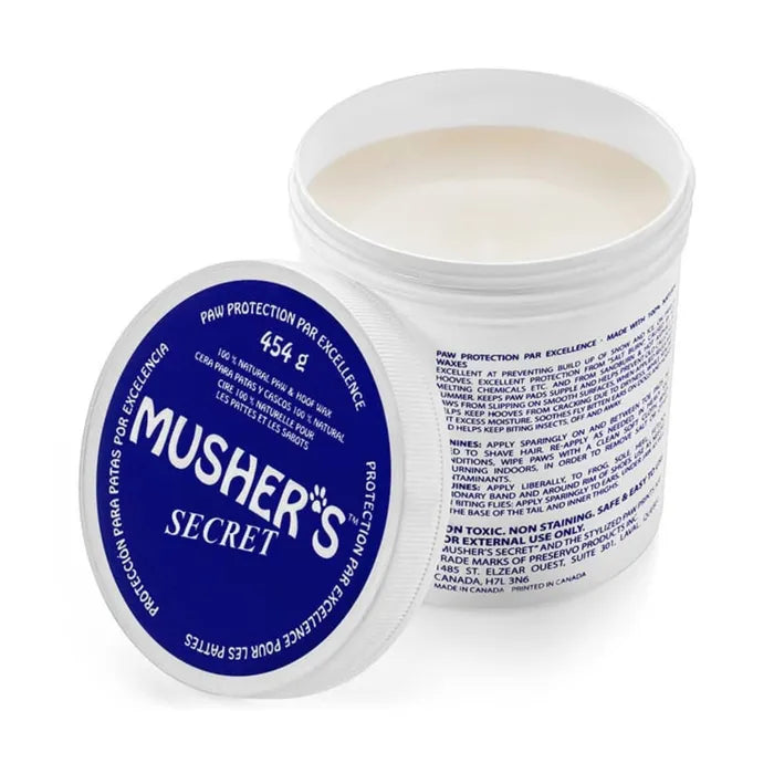 Musher’s Secret is a 100% natural, food grade wax that forms a breathable barrier for your animals’ paws. Originally developed in Canada for use with sledding dogs, Musher’s was first perceived as a cold weather solution. It is now used for year round protection in many different environments.