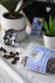 Handmade with natural Canadian ingredients for dogs and cats! Slowly dehydrated for 24 hours using 80-100% pure, lean muscle meat that are hand-cut using only eye rounds. Every treat is hand-made in small batches. Great for training, or just humans who love giving lots of little bits!