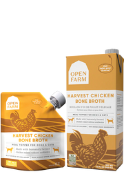 Superfood, super-soup or super delicious. Whatever you call it, Open Farm's new broth comes from ethically raised chicken. The bones are slowly simmered with functional ingredients, like locally sourced non-GMO pumpkins and carrots, and superfoods like turmeric. And it’s made specifically for pets – free of antibiotics, growth hormones, salt, garlic, and onion. Serve as topper for dry food or to rehydrate their Freeze Dried Raw recipes.
