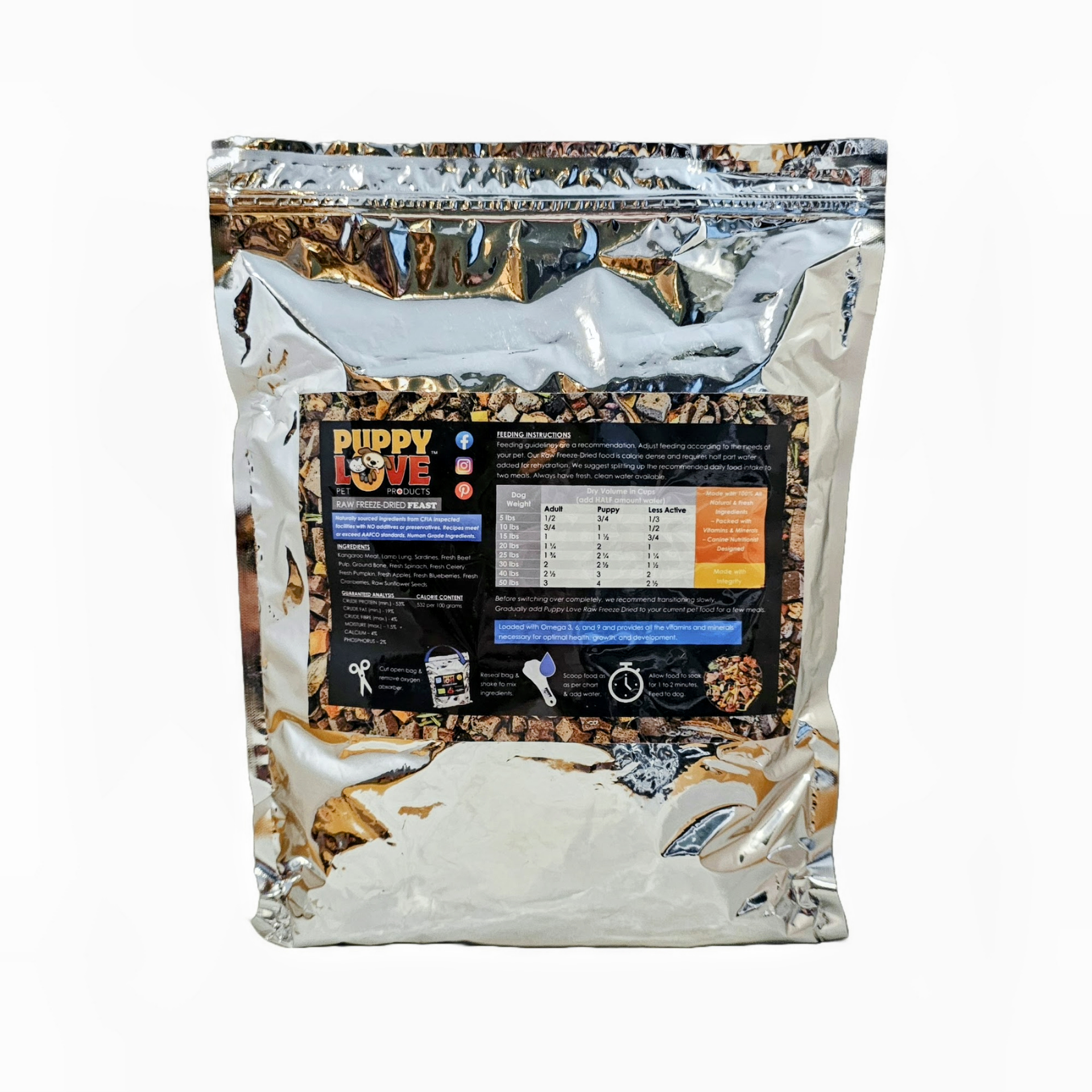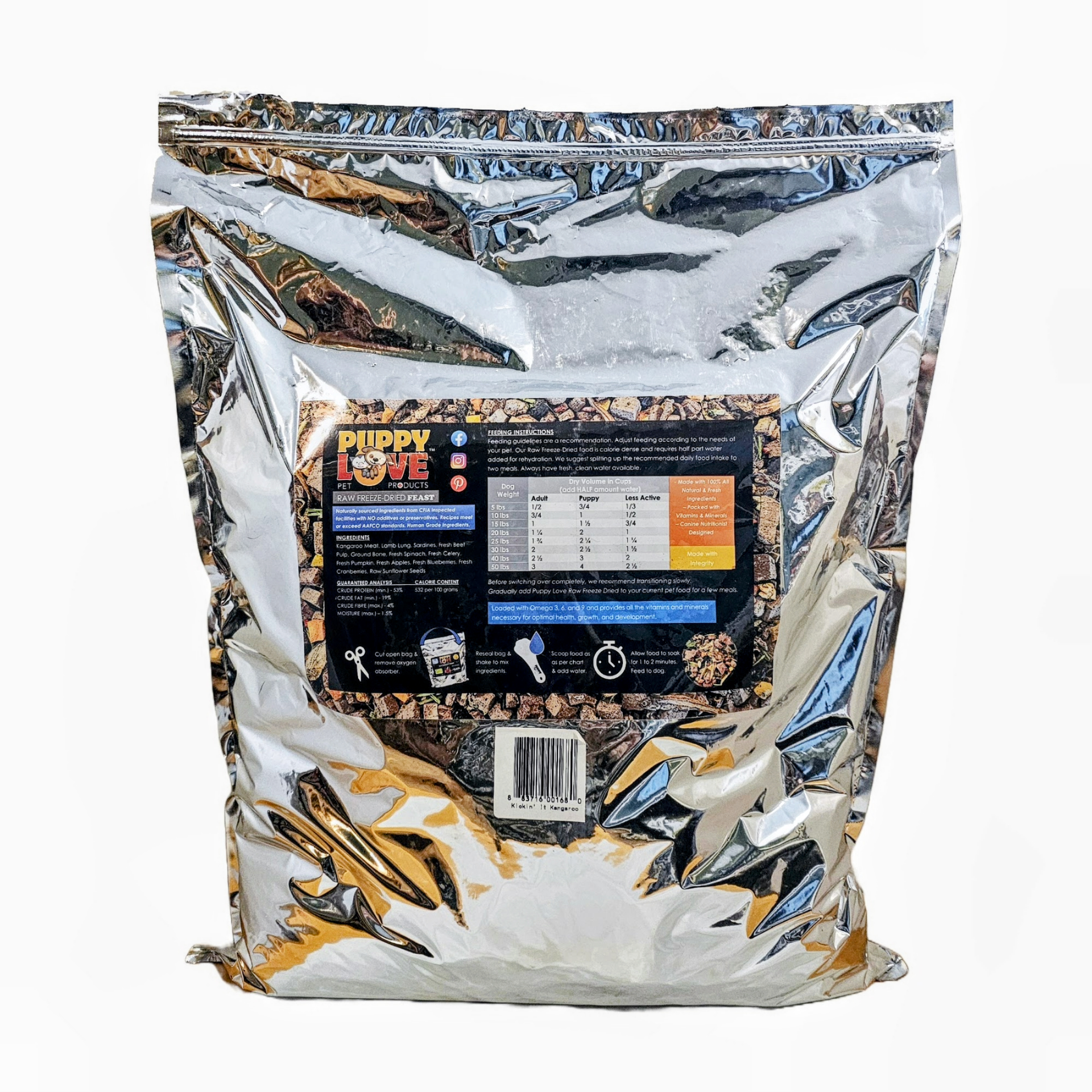 Treat your pup to the nutritious taste of Kickin' It Kangaroo! This novel protein is packed with omega 3 fatty acids, vitamins, and minerals. Kangaroo is an allergy-friendly, complete and balanced recipe for all stages of development. Show your puppy some love with Puppy Love Raw Freeze Dried Feasts!