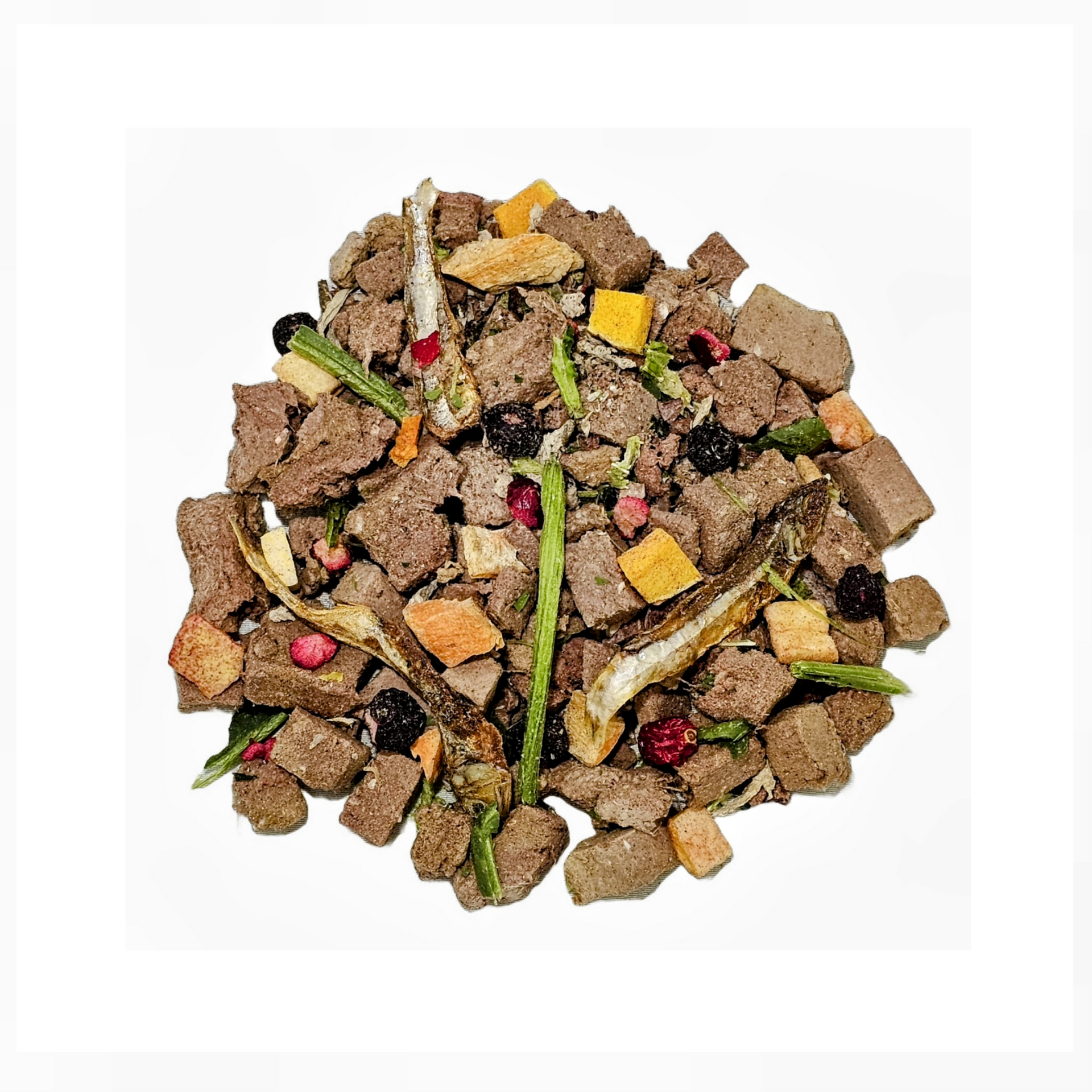 Kangaroo Meat, Lamb Lung, Sardines, Fresh Beet Pulp, Ground Bone, Fresh Spinach, Fresh Celery, Fresh Pumpkin, Fresh Apples, Fresh Blueberries, Fresh Cranberries, Raw Sunflower Seeds