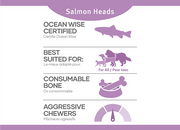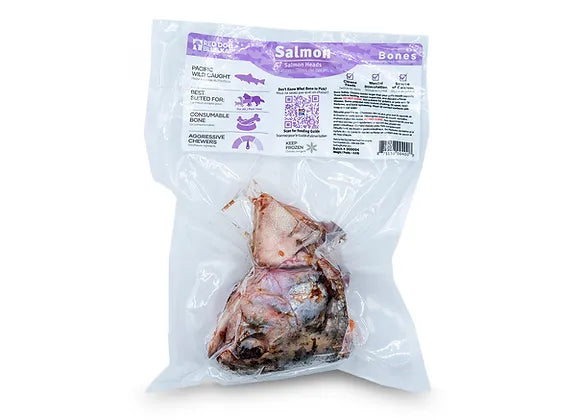 - Salmon Heads can be fed as a meal replacement, served semi-frozen, and are also great for making broth.