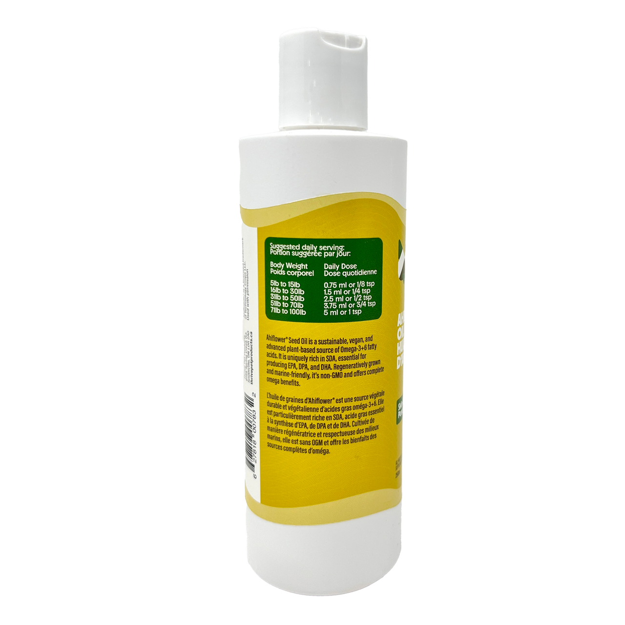 Ahiflower oil is processed and packaged in Canada from a non-GMO crop that is grown in the UK using sustainable and regenerative practices, making it an earth and ocean friendly option.