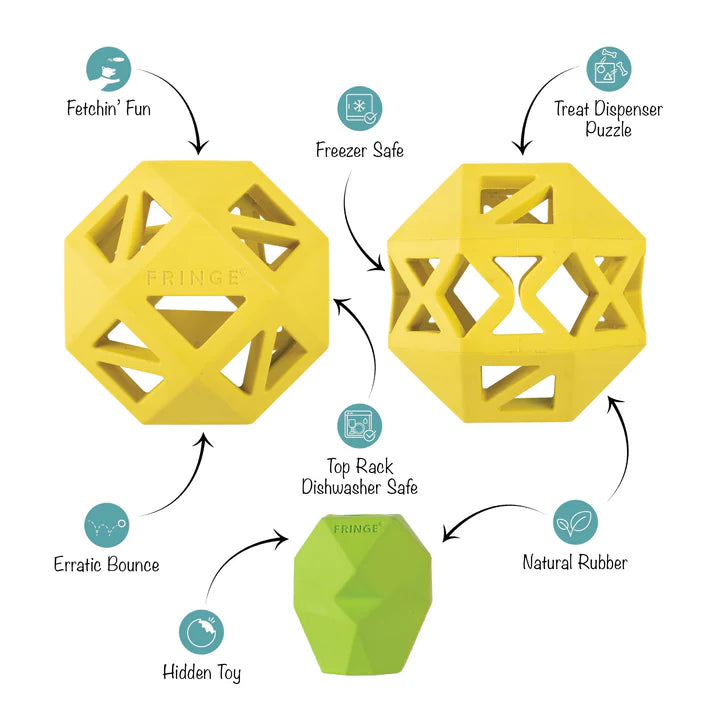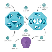 Ready to join the Dura Club? Our "Sweet on the Inside" rubber dog toy is for pups that love to work for their treats, chew, and play lots of fetch. Made with natural rubber and an erratic bounce, this 2-in-1 treat dispenser puzzle toy was created for long-lasting interactive play. Simply fill the inner treat dispenser puzzle or outer treat dispenser with treats, then toss it for some fetchin' fun to keep your pup busy trying to get them out!