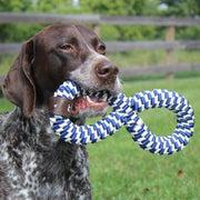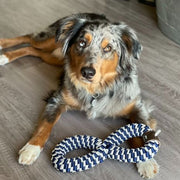 Whether your pup wants to play a rousing game of fetch, tug-of-war, or simply nibble for a little while, the Braided Infinity Tug Toy is made with your pup in mind. The special bond between you and your dog is important to Tall Tails, so designed our braided toys for long-lasting interactive play and exercise. Woven in two fun colors, the Braided Infinity Tug Toy's elasticity allows your pup to tug and pull for hours on end while also creating gaps to keep their teeth clean!