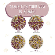 Despite how much your canine friends ask for Weruva's high-quality foods, it's best to transition them gradually onto a new food over a week. Start by mixing a small amount of Weruva in with their old food and slowly increase the amount of Weruva fed over 7 days. This will help your pooch to adjust to their new Weruva foods – Because WeLuvya