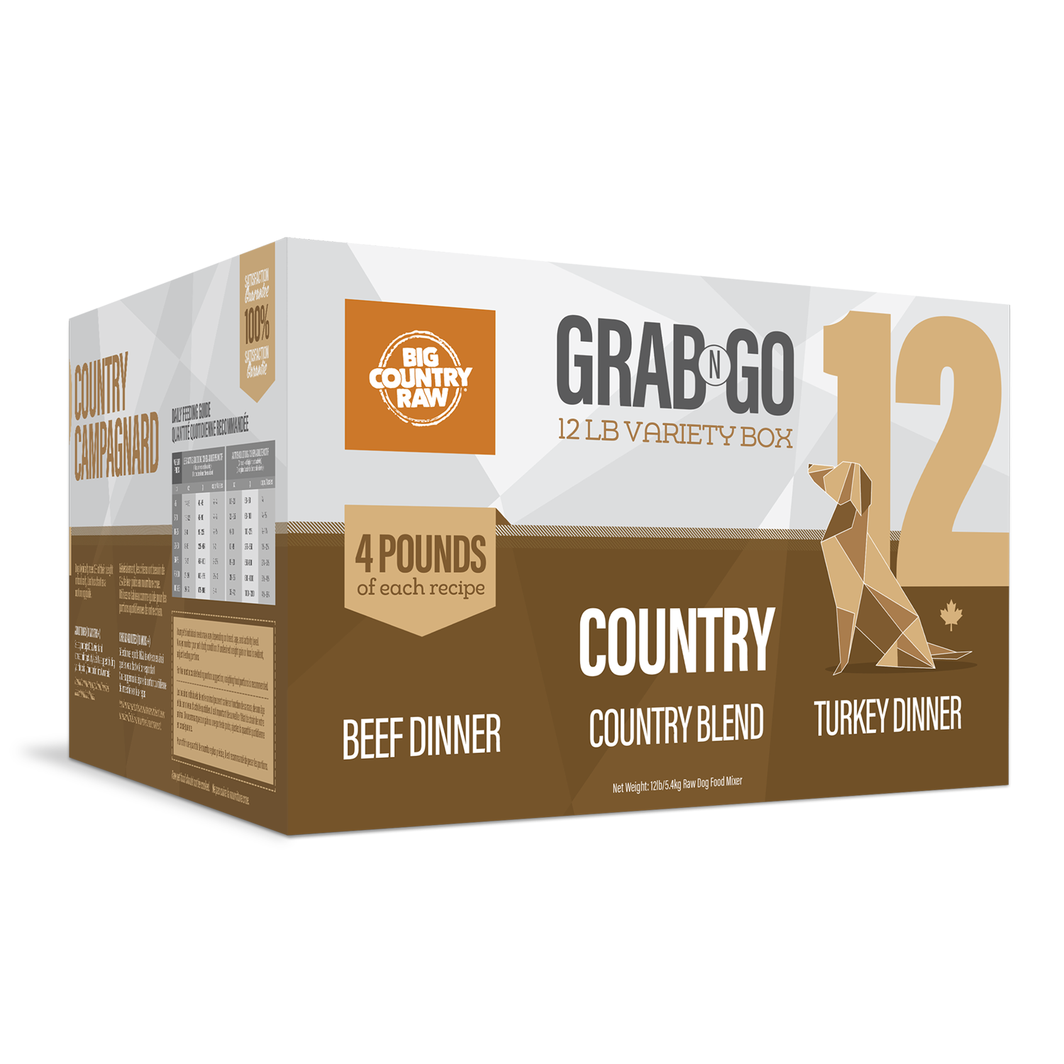 Sensitive to chicken? This box is just 2 proteins – Turkey and Beef. The Country box contains Turkey Dinner, Beef Dinner and Country Blend.